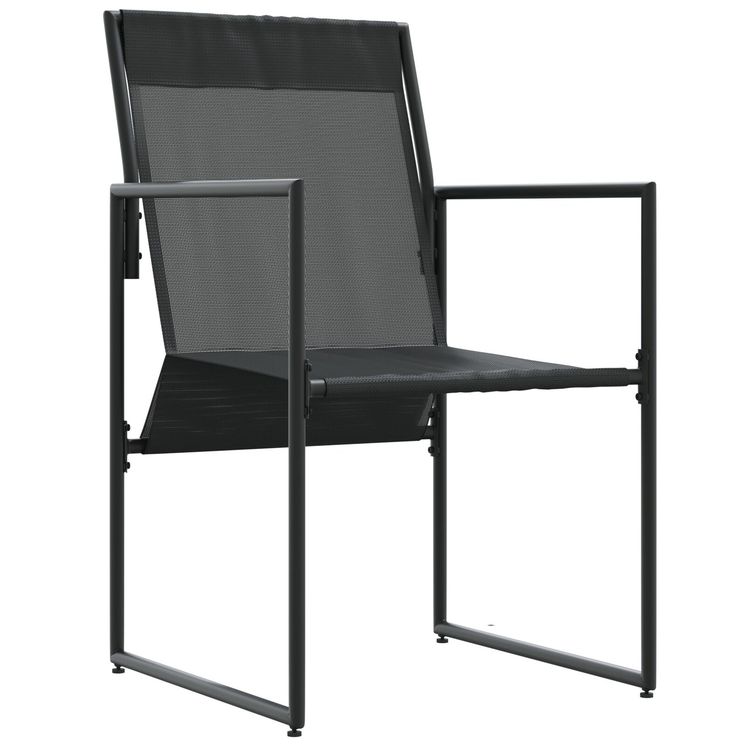 Dette settet med fire svarte hagemøbler handler om moderne utesitting med et elegant design som passer perfekt til enhver terrasse eller hage. Laget av pulverlakkert metall og mykt Textilene-stoff, ser disse stolene ikke bare bra ut, men gir også behagelige steder å slappe av på solfylte dager eller under hagefester.