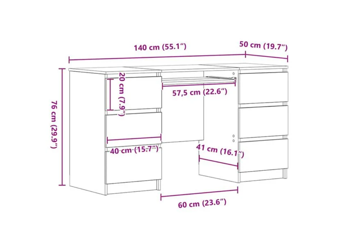 - Med mål på 140 cm i lengde, 50 cm i bredde og 76 cm i høyde, gir dette skrivebordet rikelig med plass til en laptop eller bøker, perfekt for en effektiv arbeidsplass.
