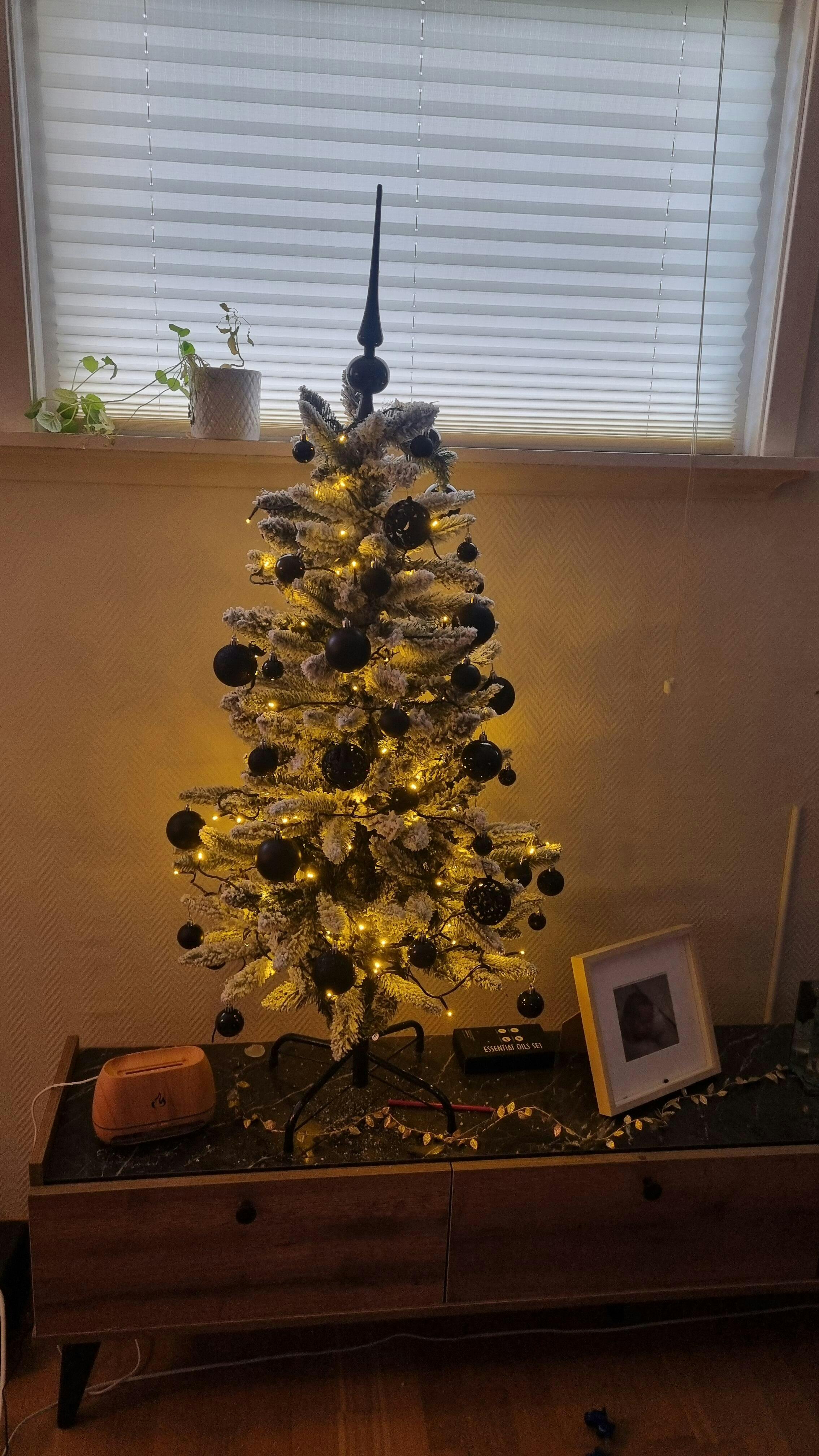 - Dekorative funksjoner: Treet har enkle, men stilige dekorasjoner som fremhever det moderne utseendet. De dekorative aksentene tilfører en følelse av eleganse og stil, og gjør stuen eller utesonen din til et koselig feriesteder.