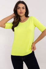 Light and stylish women's sweater with short sleeves is a perfect choice for casual stylizations, which will work well both at work and during everyday activities. The smooth pattern emphasizes its classic and versatile character, suitable for many occasions. The standard length model is made of a soft and pleasant to the touch blend of viscose, polyester, polyamide and wool, which guarantees comfort and durability. The round neckline adds subtlety, and the lack of fastening allows for easy matching to different stylizations. This sweater looks great paired with jeans, fabric trousers or skirts, creating a harmonious, casual whole. Ideal for women who appreciate comfort and timeless elegance.