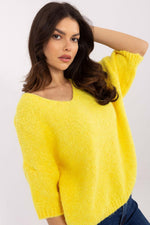 Stylish women's sweater with a casual character, perfect for everyday wear and work. Made of high-quality blend of acrylic, wool (lana), viscose, and polyamide, it provides softness, comfort, and durability. The smooth pattern gives it an elegant, minimalist look that pairs well with both jeans and more formal pants or skirts. The short sleeves and V-neck emphasize the feminine character of the sweater, making it a great choice for various occasions. The standard length makes it suitable for many stylings. An ideal proposition for women who appreciate comfort and timeless elegance.